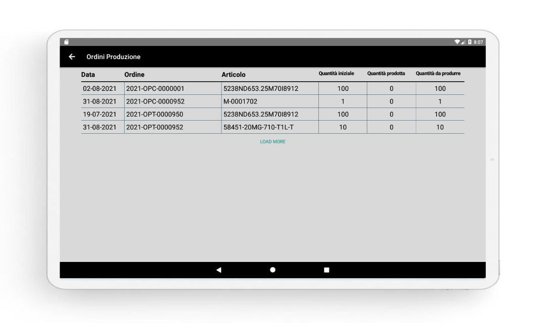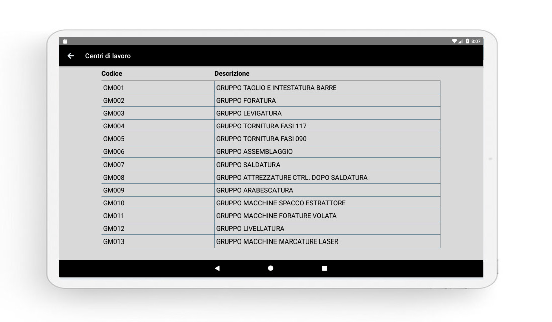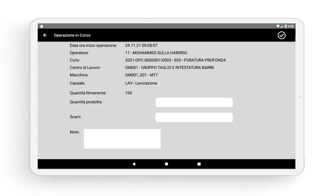 Permette la rilevazione dei tempi e delle quantità prodotte e scartate da ogni operatore e la rilevazione dei fermi macchina per una successiva analisi e verifica dei dati raccolti che poi confluiranno nel gestionale aziendale.