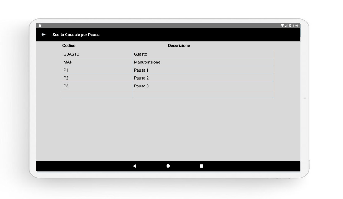 - Rilevazione dei fermi macchina con la relativa causa
